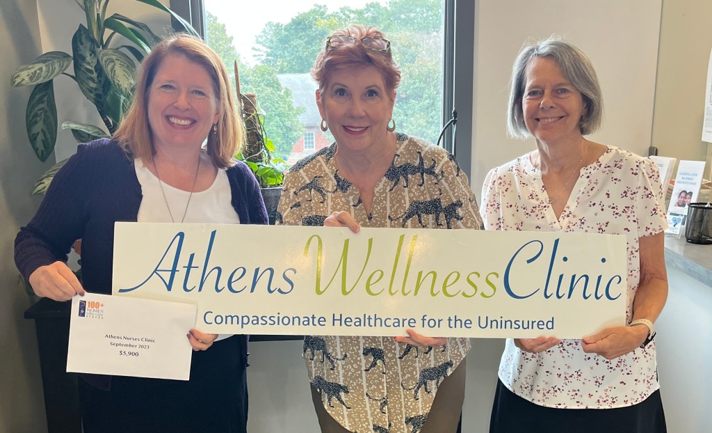 This quarter, we selected Athens Nurses Clinic. Pictured are member Christy Sinksen, who nominated ANC, and Paige M. Cummings, ANC Executive Director. We raised $6,400 this quarter to support their work in our community providing healthcare and medications at no cost. Adding the Richard M. Schulze Family Foundation’s #ThePowerOf100 grant brought our total impact to $9,550, our largest to date!