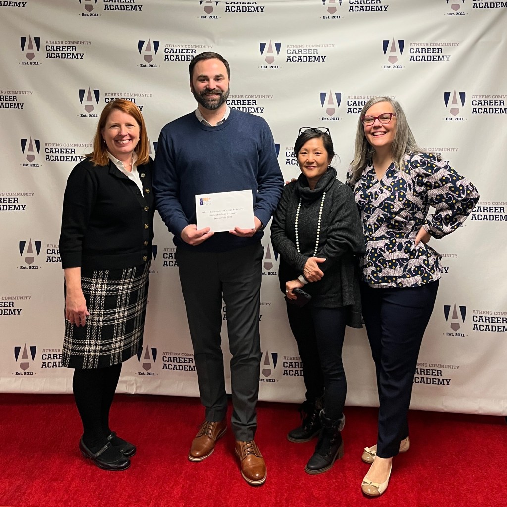 As we wrapped up our 9th year, we selected the Athens Community Career Academy. We raised $5,850 to support the development of a brand-new pathway in Biotechnology. Pictured are ACCA Chief Executive Officer Wesley Mellina, nominating member Myung Cogan, and Ilka McConnell, Athens-Clarke County Economic Development Director. Thanks to all of our members for participating this year!