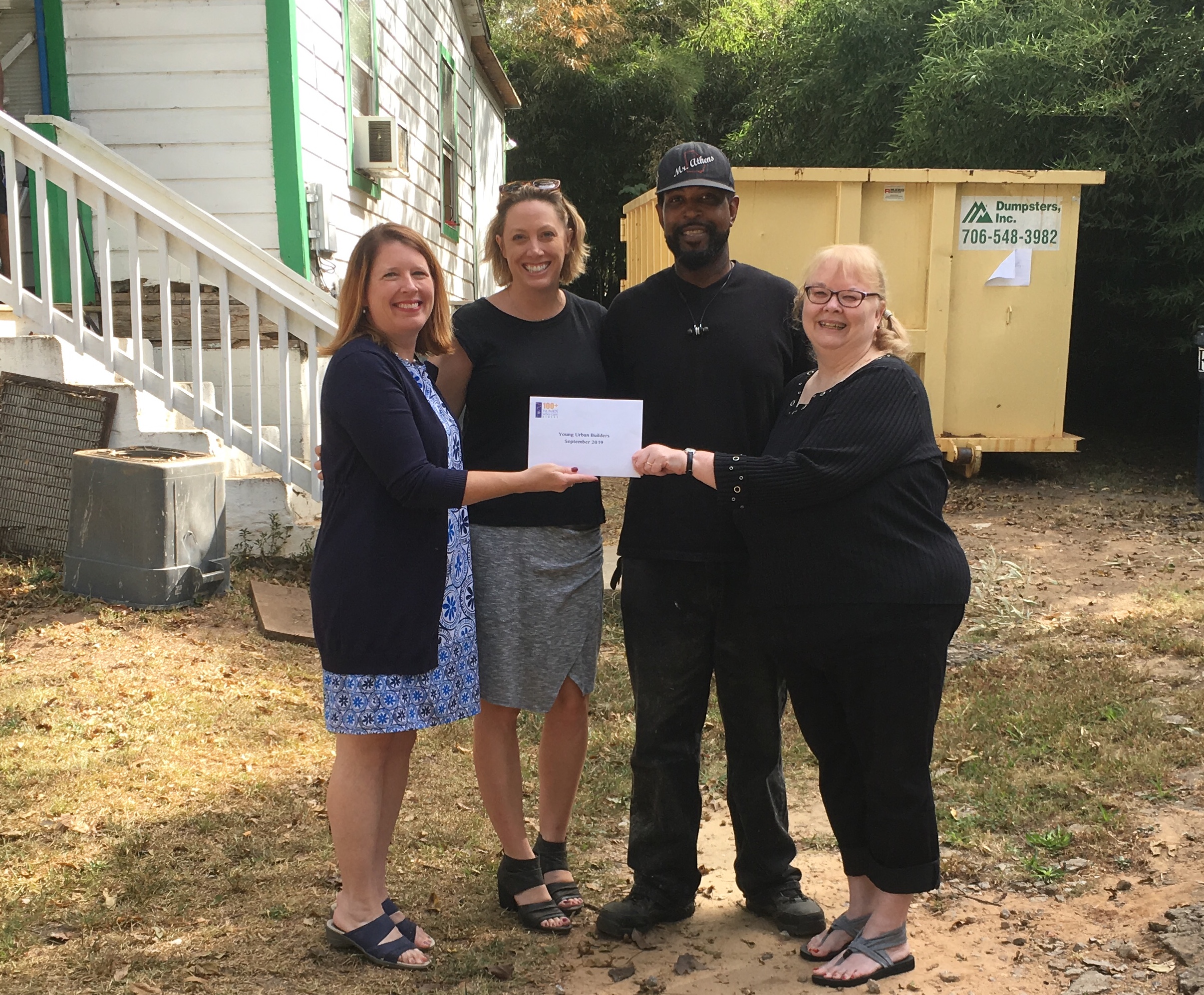 This quarter, we selected the Athens Land Trust Young Urban Builders program. Member Mary O’Toole and I presented $5,550 to Heather Benham, Athens Land Trust Executive Director, and Fernakey Brown, Young Urban Builders Coordinator. The goals of the program include neighborhood revitalization and youth development. This organization is also eligible for a 50% matching grant from the Richard M. Schulze Family Foundation, bringing our total impact this quarter to $8,325!! Thanks to Ashley Thompson from Athens Land Trust for taking the photo in front of a Young Urban Builders project home, and a special thanks to all of our members who make #ThePowerOf100 possible!