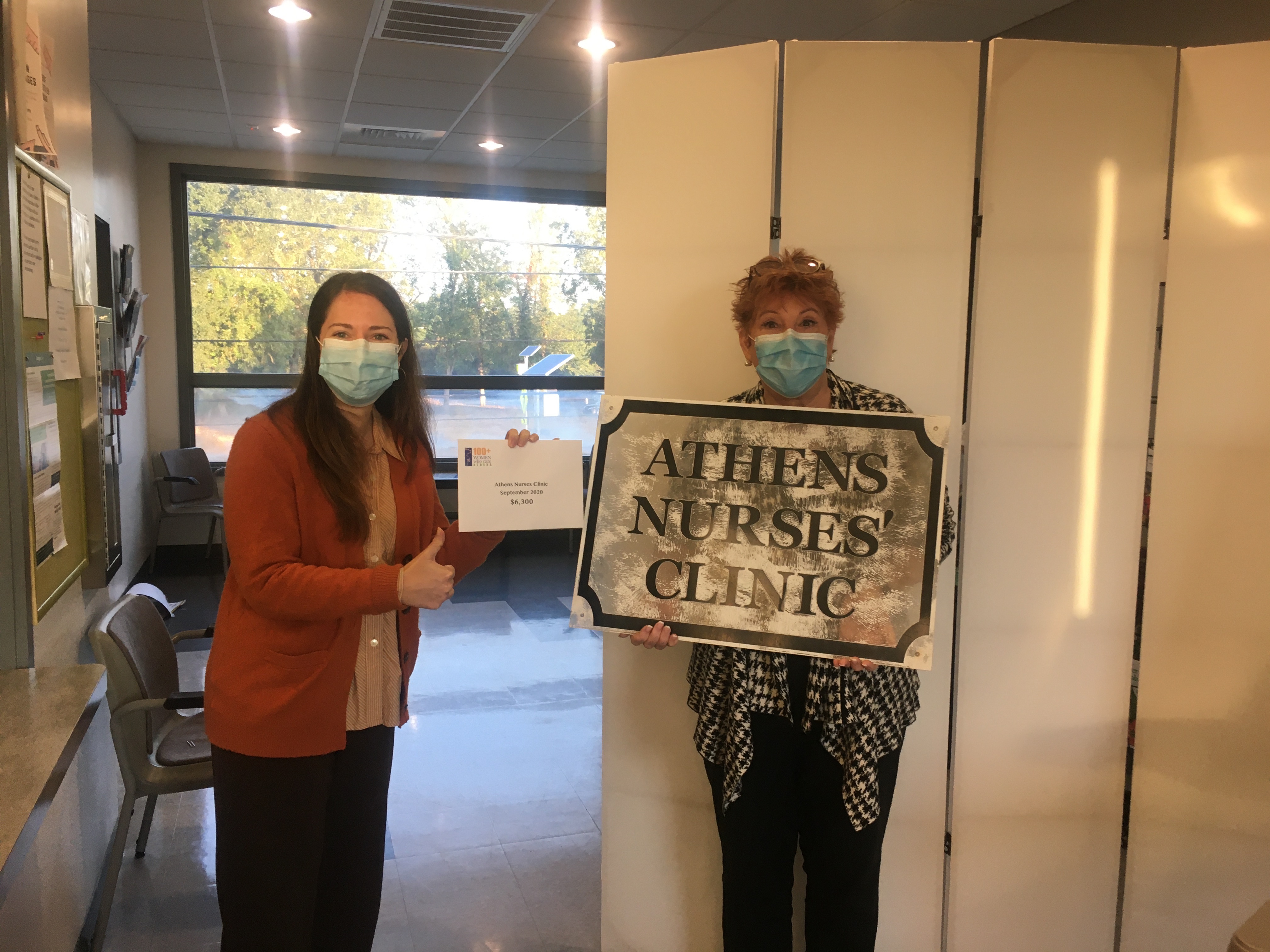 This quarter, we selected the Athens Wellness Clinic, formerly known as the Athens Nurses Clinic. This was our second round of donations for this organization, which provides “free evaluation, treatment, and education for acute and chronic medical and dental conditions to uninsured low-and-no income residents of Athens-Clarke County and the surrounding communities.” Pictured are Executive Director, Paige M. Cummings, and nominating member Terry Thompson.