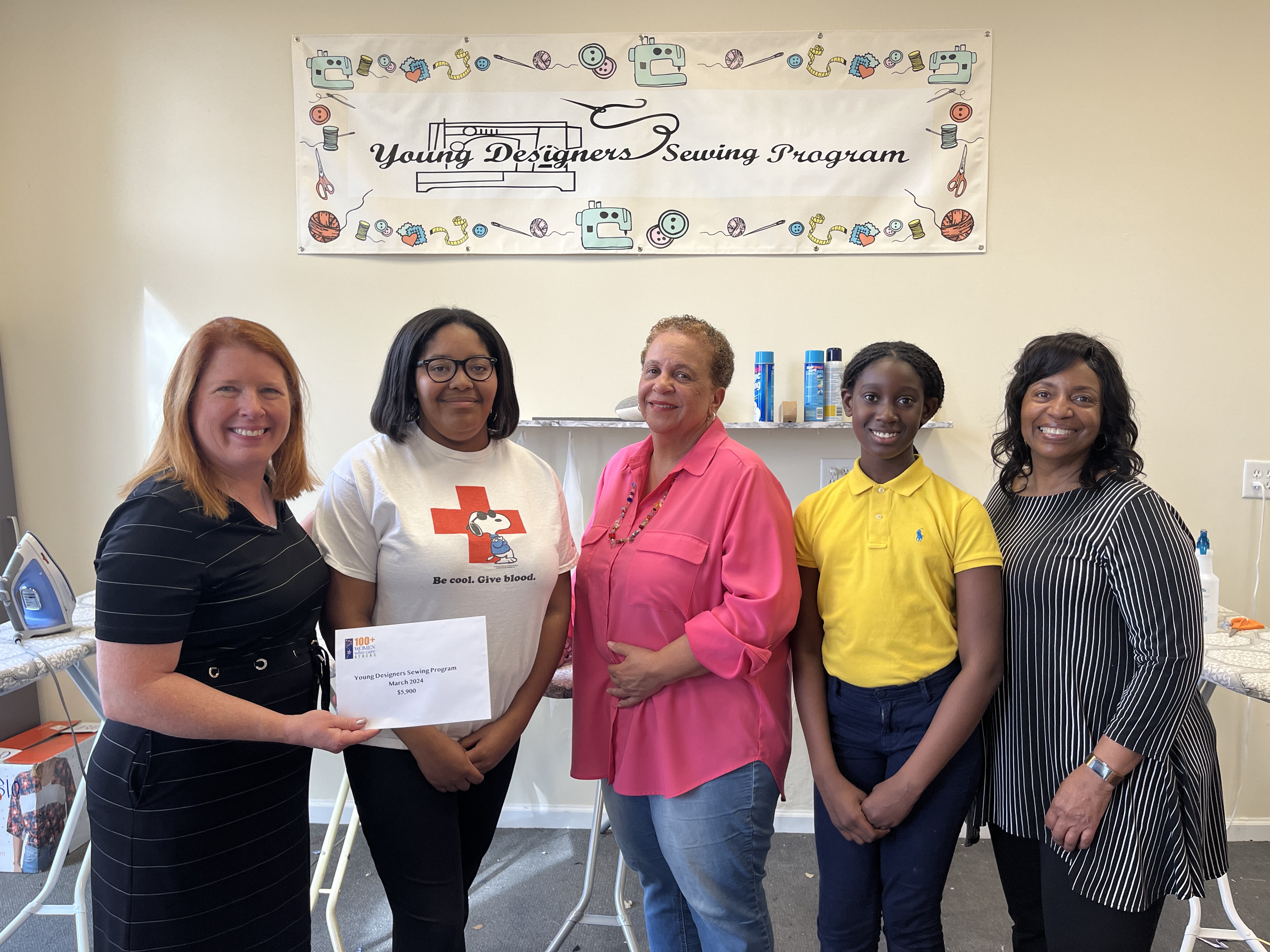 This quarter, we selected the Young Designers Sewing Program. We raised $5,900 to support the program participants, young people in grades 4-12, as they learn “the art of sewing, as well as other skills that prepare them for the future such as social skills, etiquette, workplace readiness, basic business principles and practices, and much more.” Pictured are two program participants, 100 Women Members Sherry Clouser and Annice Ritter, and Sandra Bland, YDSP Treasurer.
