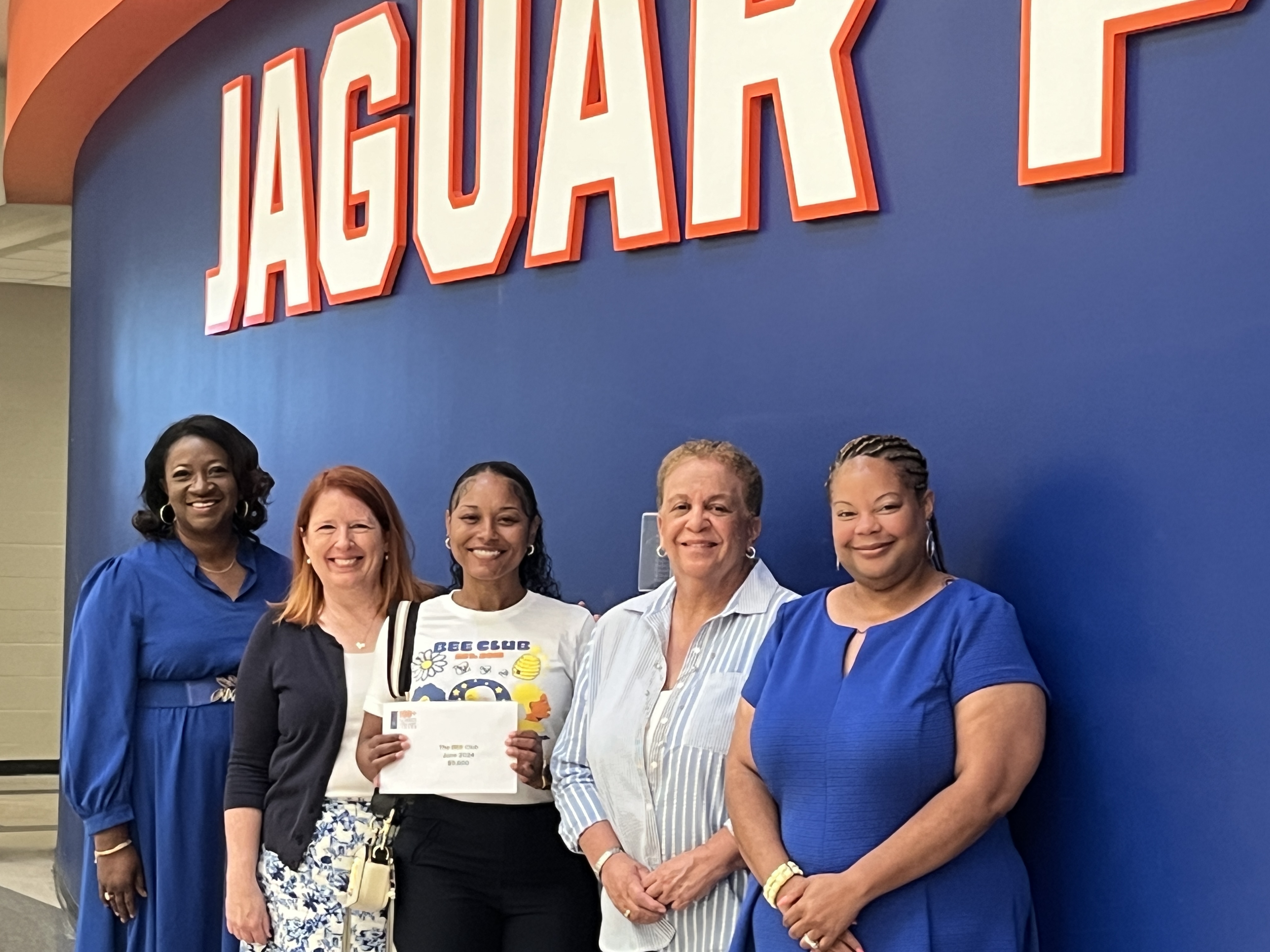 Our second-quarter recipient is the BEE Club, Inc. This organization is a peer leadership group for teen girls. From their website: “The organization was founded in 2013 with 100 girls at Westlake High School in Fulton County. Today, the organization has welcomed over 400 girls in Atlanta and is now serving girls at Cedar Shoals High School in Athens, GA.” Our donations totaled $5,600 to help support the chapter here in Athens. 100 Women members Annice Ritter and Sherry Clouser delivered our checks to Akilah Blount, Founder and CEO of the BEE Club for Girls. Cedar Shoals staff members who work with the BEE Club members, Ms. Gay and Ms. Bolton, joined us to celebrate!